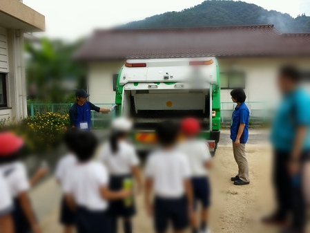 ※積み込み体験は、事前準備と安全に配慮して行っております。 街中で回収車を見かけても、危険なので絶対に近寄らないでください。