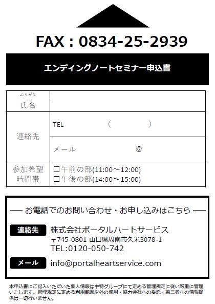 2/27(木)におのだサンパークにてエンディングノートセミナーを開催いたします。